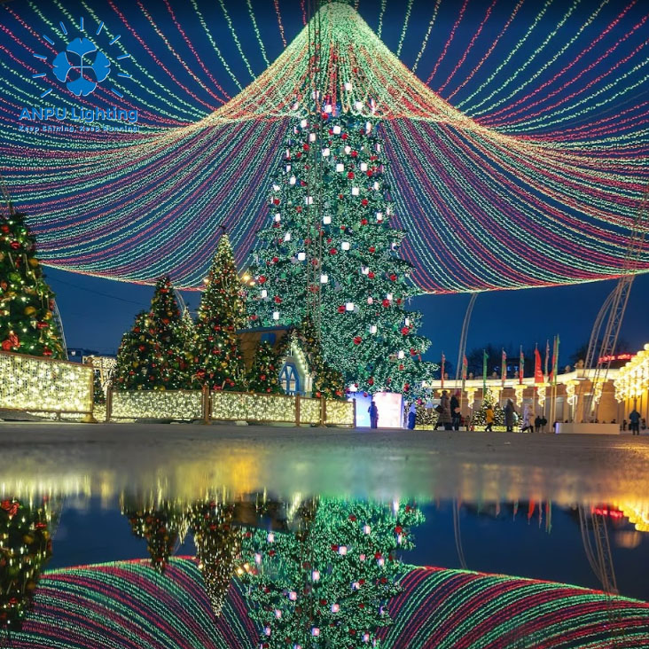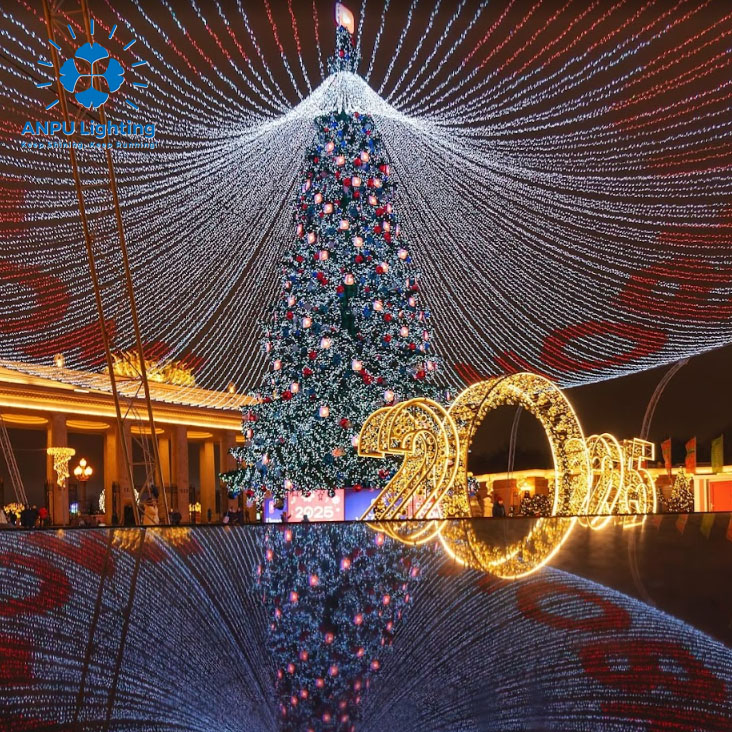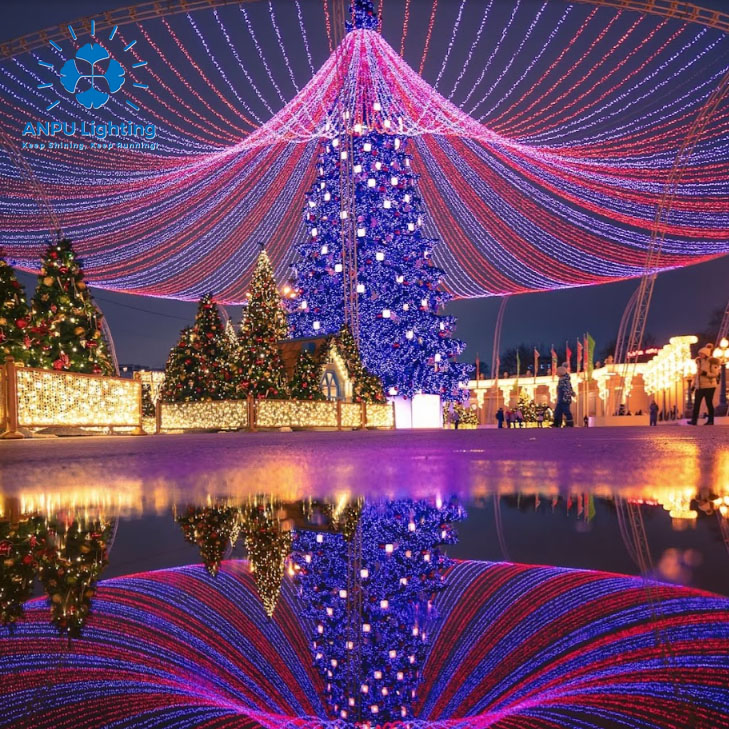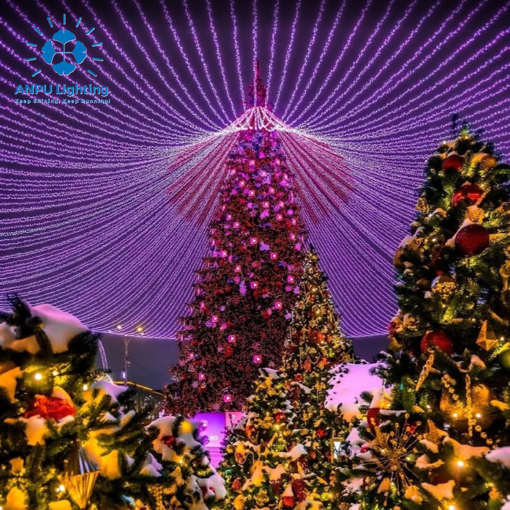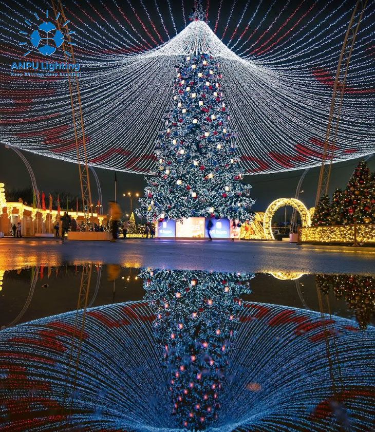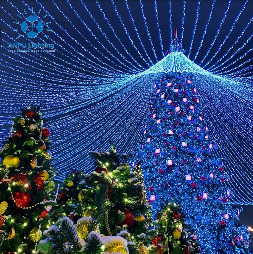 ANPU 12M Christmas Trees with Veil – Elegant Canopy Drapes & Warm Glow for Dreamy Outdoor Holiday Magic