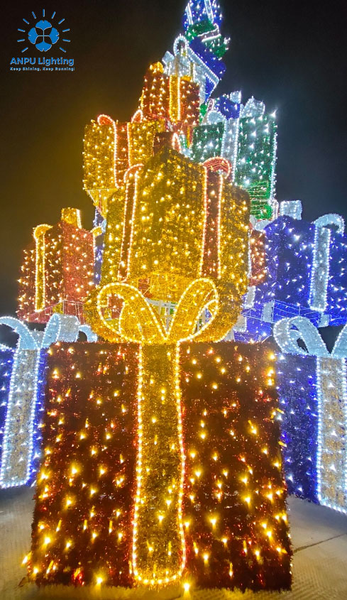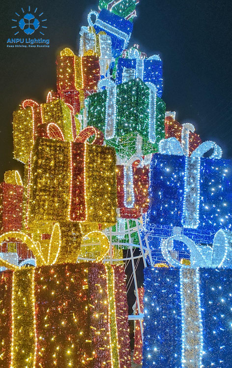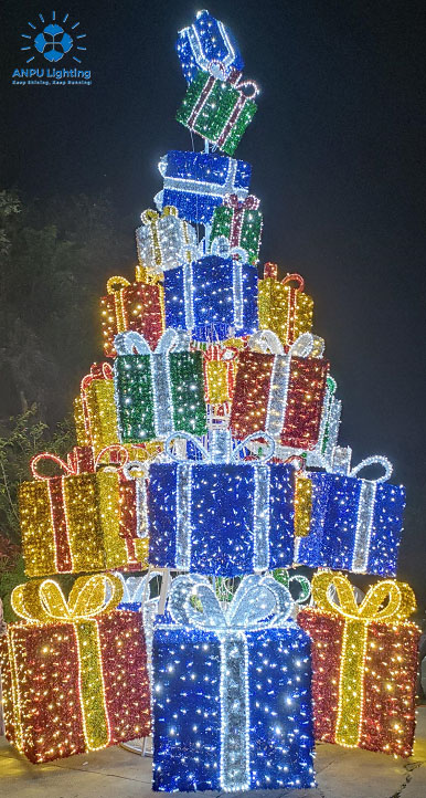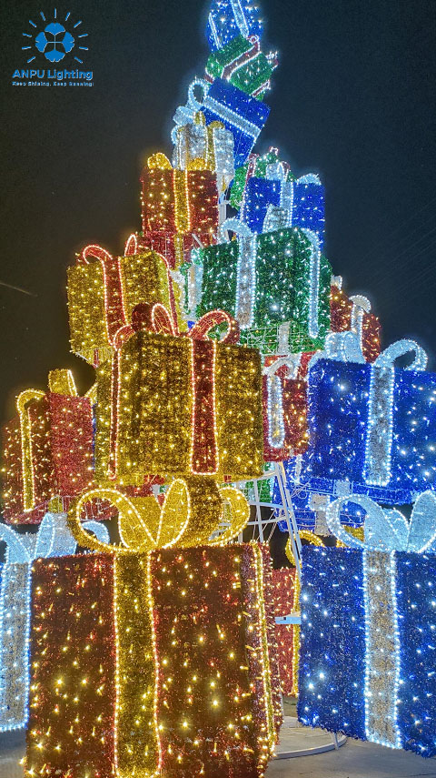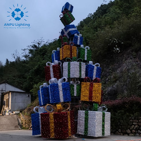 Gift Box Tower Outdoor Landscape Lights Stacked Light Shadow Holiday Decorative Lighting
