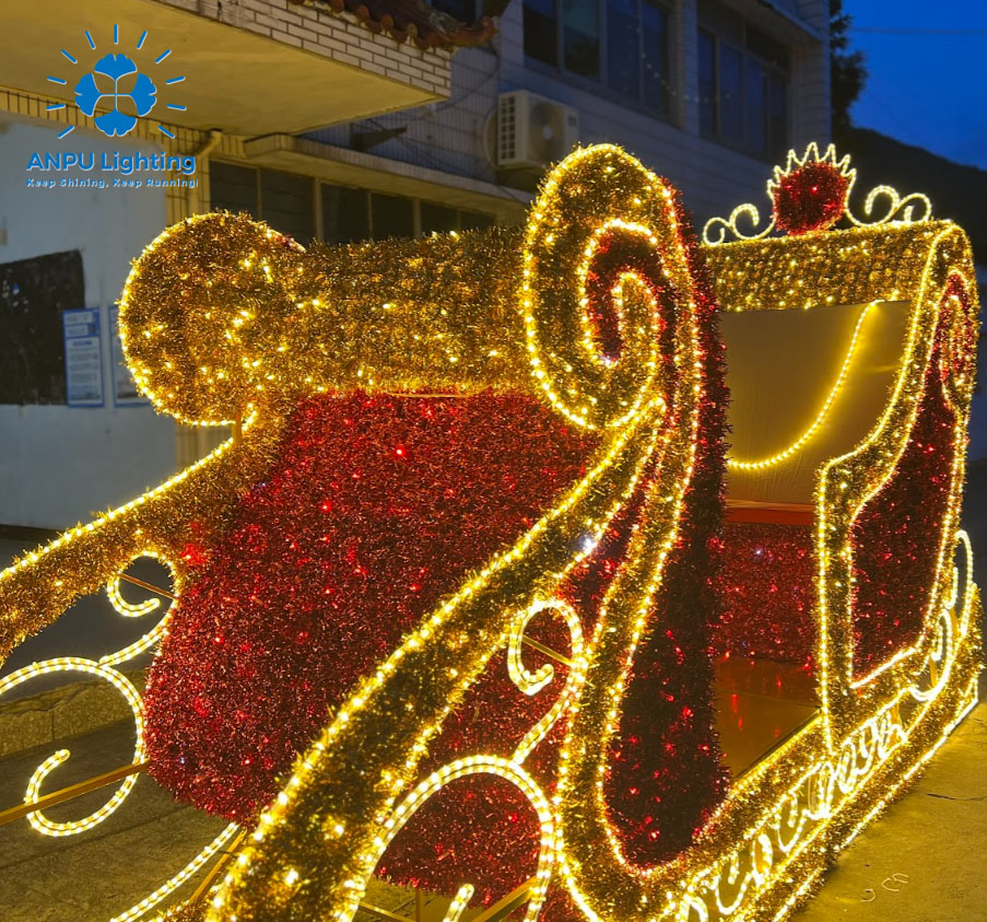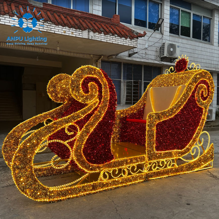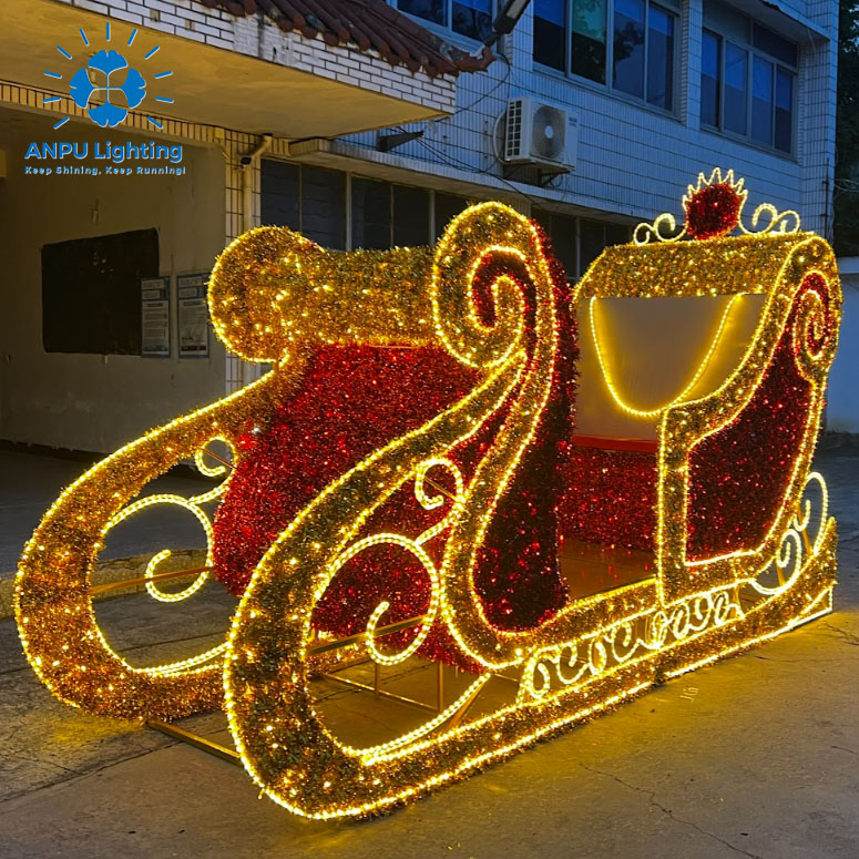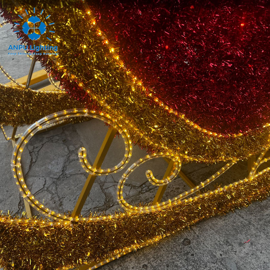 Large Christmas Sleigh Shaped Lights Dreamy Holiday Outdoor Landscape Lighting