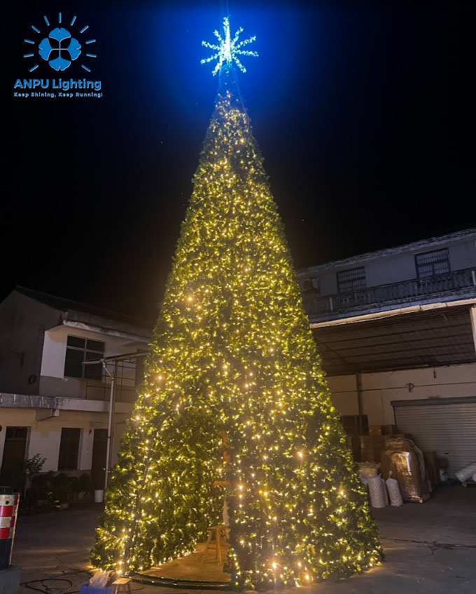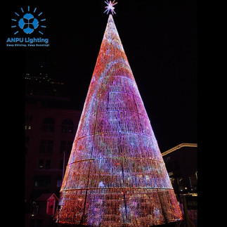 Elevate your holiday landscape with the ANPU Outdoor IP65 Christmas Tree, a spectacular centerpiece specifically engineered for high-impact Christmas displays in outdoor and commercial environments. This premium giant Christmas tree features a customizable height range from 4m to 50m, making it the perfect landmark for shopping centers, city squares, amusement parks, and festive public spaces. Built for durability and safety, the structure consists of a heavy-duty, reinforced iron frame dressed in high-density, flame-retardant PVC rattan and needles. To ensure a dazzling nocturnal display, the tree is integrated with high-brightness, energy-efficient LED lights. Designed to withstand the elements, our trees are 100% outdoor waterproof, UV-resistant to prevent fading, and fully fire-retardant, meeting strict safety standards for large-scale public installations. Whether for a luxury mall or a municipal plaza, this waterproof and customizable giant Christmas tree offers the ultimate combination of grand scale, safety, and festive magic.