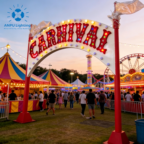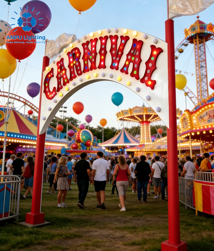 Festive & Holiday Displays: Ideal for Christmas light shows, New Year celebrations, and theme park Chasing Marquee Signboarded Gate installations.