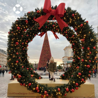Specifically engineered as an Giant Commercial Pre-lit Wreath, every component is built to endure harsh winter elements. The internal structure consists of a heavy-duty, rust-resistant iron wire frame, while the integrated LED Pre-lit Wreath system features waterproof-sealed bulbs and connectors. This ensures the wreath remains brilliant and electronically safe during heavy rain, snow, or freezing temperatures, making it the perfect choice for outdoor parks, building facades, and open-air squares.
