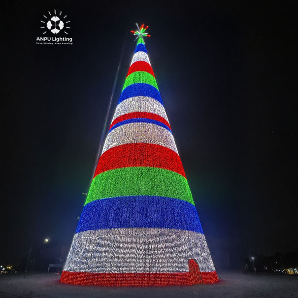 Elevate your holiday landscape with the ANPU Record Breaking Christmas Tree, a spectacular centerpiece specifically engineered for high-impact Christmas displays in outdoor and commercial environments. This premium giant Christmas tree features a customizable height range from 4m to 50m, making it the perfect landmark for shopping centers, city squares, amusement parks, and festive public spaces. Built for durability and safety, the structure consists of a heavy-duty, reinforced iron frame dressed in high-density, flame-retardant PVC rattan and needles. To ensure a dazzling nocturnal display, the tree is integrated with high-brightness, energy-efficient LED lights. Designed to withstand the elements, our trees are 100% outdoor waterproof, UV-resistant to prevent fading, and fully fire-retardant, meeting strict safety standards for large-scale public installations. Whether for a luxury mall or a municipal plaza, this waterproof and customizable giant Christmas tree offers the ultimate combination of grand scale, safety, and festive magic.