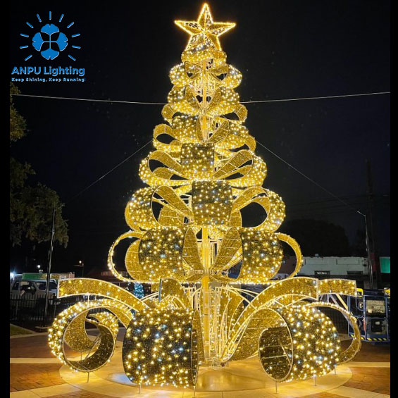 Elevate your holiday landscape with the ANPU Bowknot Ribbon Attraction Christmas Tree, a spectacular centerpiece specifically engineered for high-impact Christmas displays in outdoor and commercial environments. This premium giant Christmas tree features a customizable height range from 4m to 50m, making it the perfect landmark for shopping centers, city squares, amusement parks, and festive public spaces. Built for durability and safety, the structure consists of a heavy-duty, reinforced iron frame dressed in high-density, flame-retardant PVC rattan and needles. To ensure a dazzling nocturnal display, the tree is integrated with high-brightness, energy-efficient LED lights. Designed to withstand the elements, our trees are 100% outdoor waterproof, UV-resistant to prevent fading, and fully fire-retardant, meeting strict safety standards for large-scale public installations. Whether for a luxury mall or a municipal plaza, this waterproof and customizable giant Christmas tree offers the ultimate combination of grand scale, safety, and festive magic.